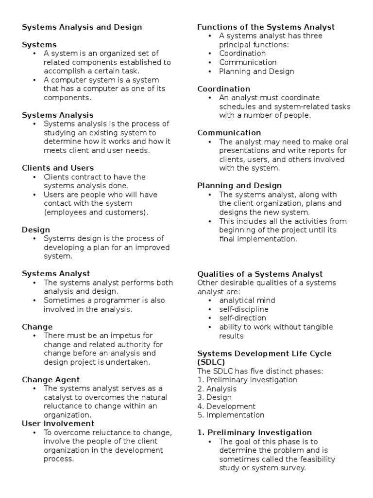 For example if the request is for a software program to computerize a book-ordering system evaluate the current ordering system from beginning to end. Numerous educators have suggested and shown the value in having a real world project for a Systems Analysis and Design course. Plan and coordinate the sequencing and variations of terminal dialoguescreens to be viewed by users.