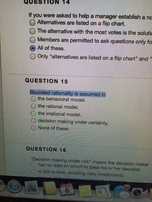 Rigorous and comprehensive. D just good enough 30. In fact he believed that rather than optimizing which was the mainstream view in the past decades humans follow what he called satisficing. D bounded rational intuitive and systematic A rational bounded rational and intuitive 20 Which term best characterizes a decision that has bounded rationality. Organizational behavior is the theory of intentional and bounded rationality. In this sense the term bounded rationality is used to designate a rational choice that takes into account the cognitive limitations of the person responsible for decision making limitations of both knowledge and computational capacity. B 46 Expert systems are.